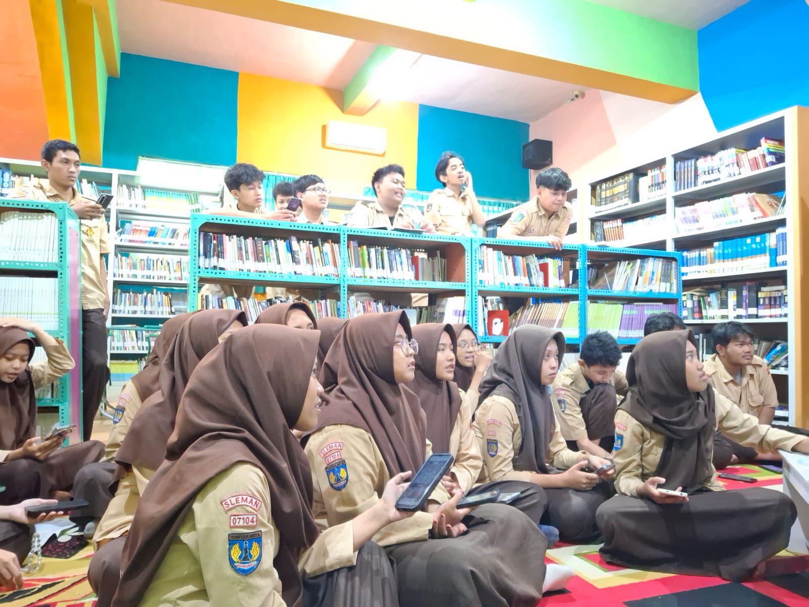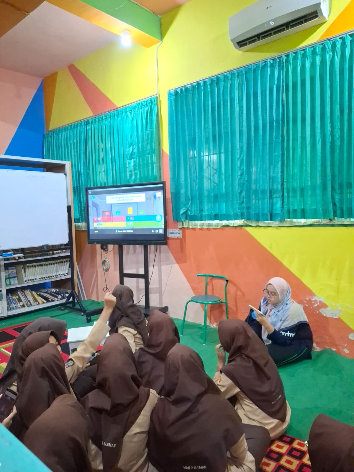 Sleman (MAN 2 Sleman) - Perpustakaan modern tidak hanya berfungsi sebagai tempat penyimpanan buku, tetapi juga sebagai pusat pembelajaran yang inovatif. Salah satu fasilitas yang dapat mendukung pembelajaran interaktif di perpustakaan adalah smart TV. Fasilitas smart TV di perpustakaan dapat mendukung pembelajaran menggunakan game interaktif Kahoot.